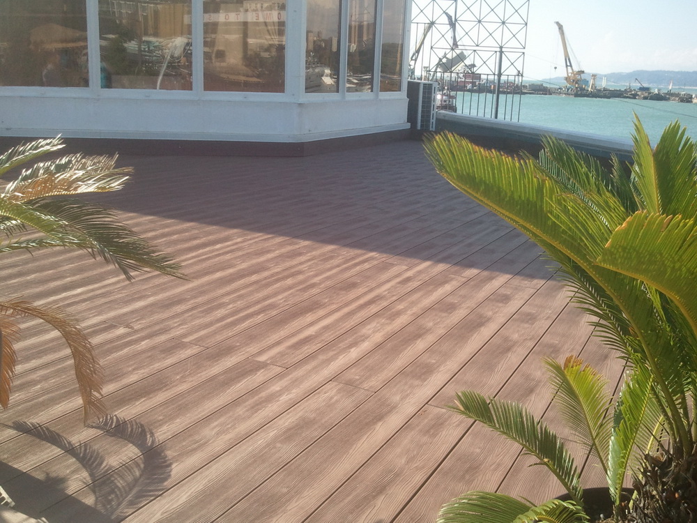 Представляем Вашему вниманию одну из наших работ с использованием террасной доски Woozen в г. Сочи в летнем кафе Морпорт. Данное покрытие подчеркивает высокий статус заведения и обладает всеми необходимыми свойствами для устойчивости к внешним воздействиям, на нем не остается царапин, а пятна или грязь легко удаляются.